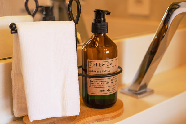 Suporte para sabonete com toalha. Toalha acompanha produto.