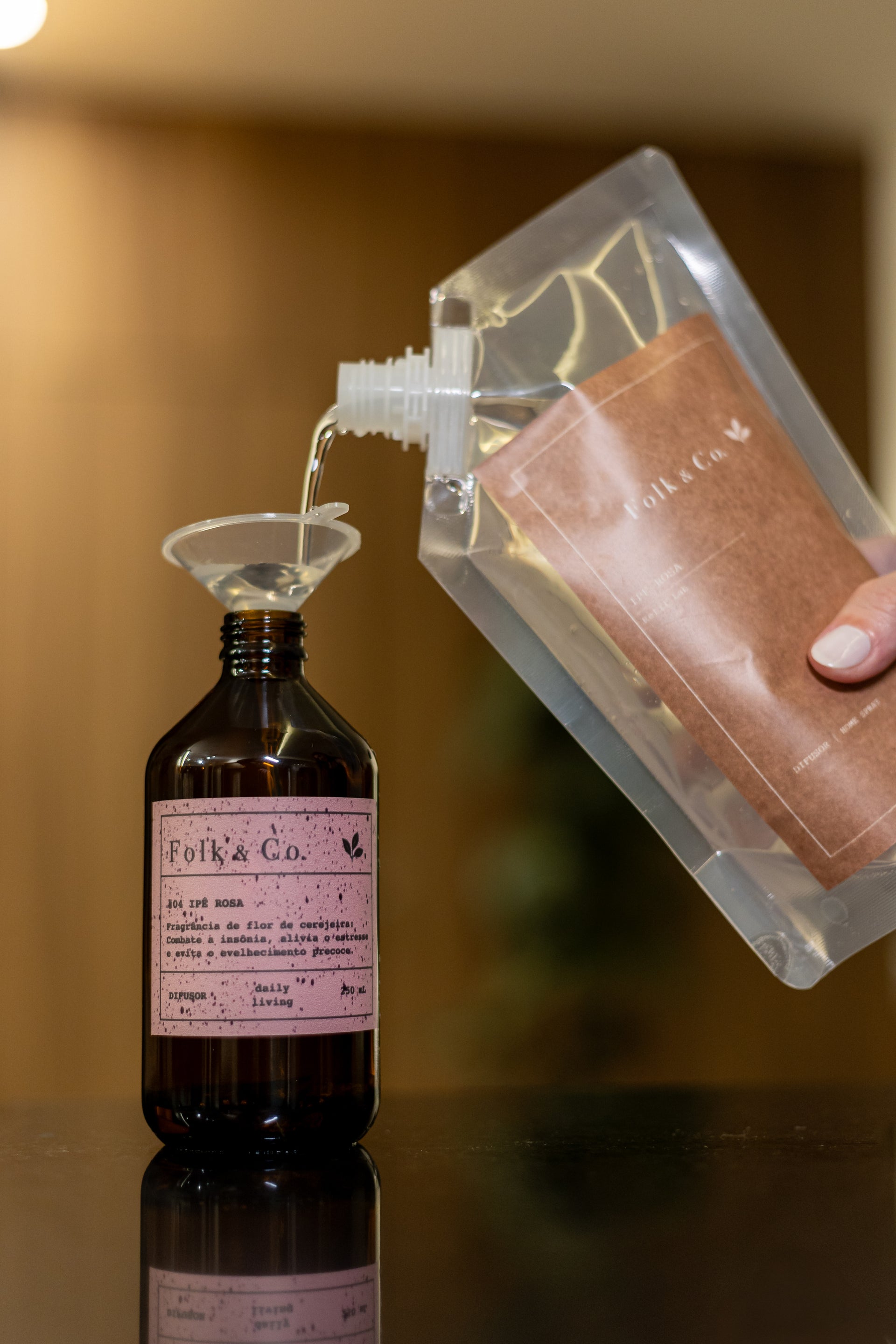 Prático, acompanha funil no tamanho ideal para facilitar a reposição.Reduzir, reutilizar e reciclar.