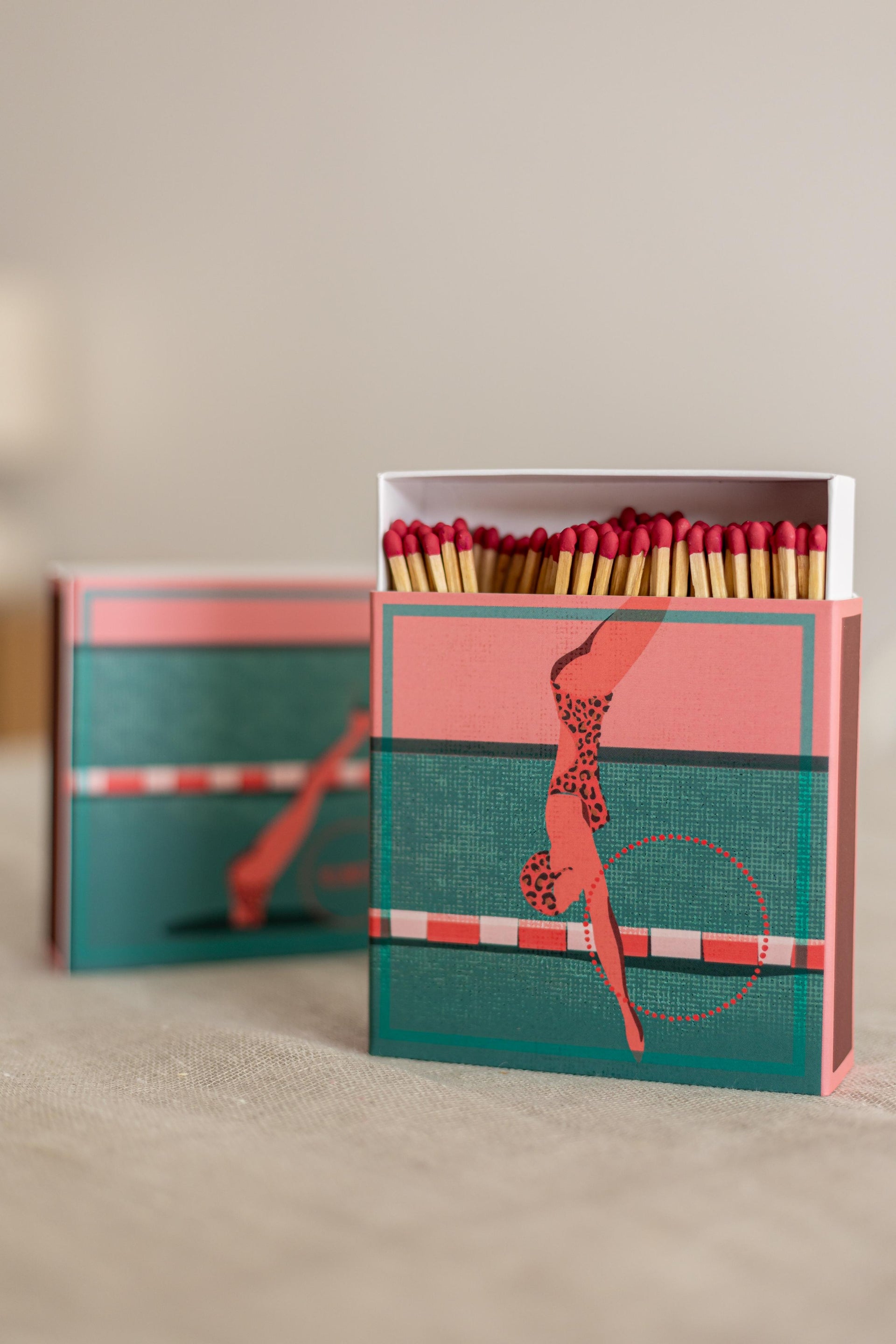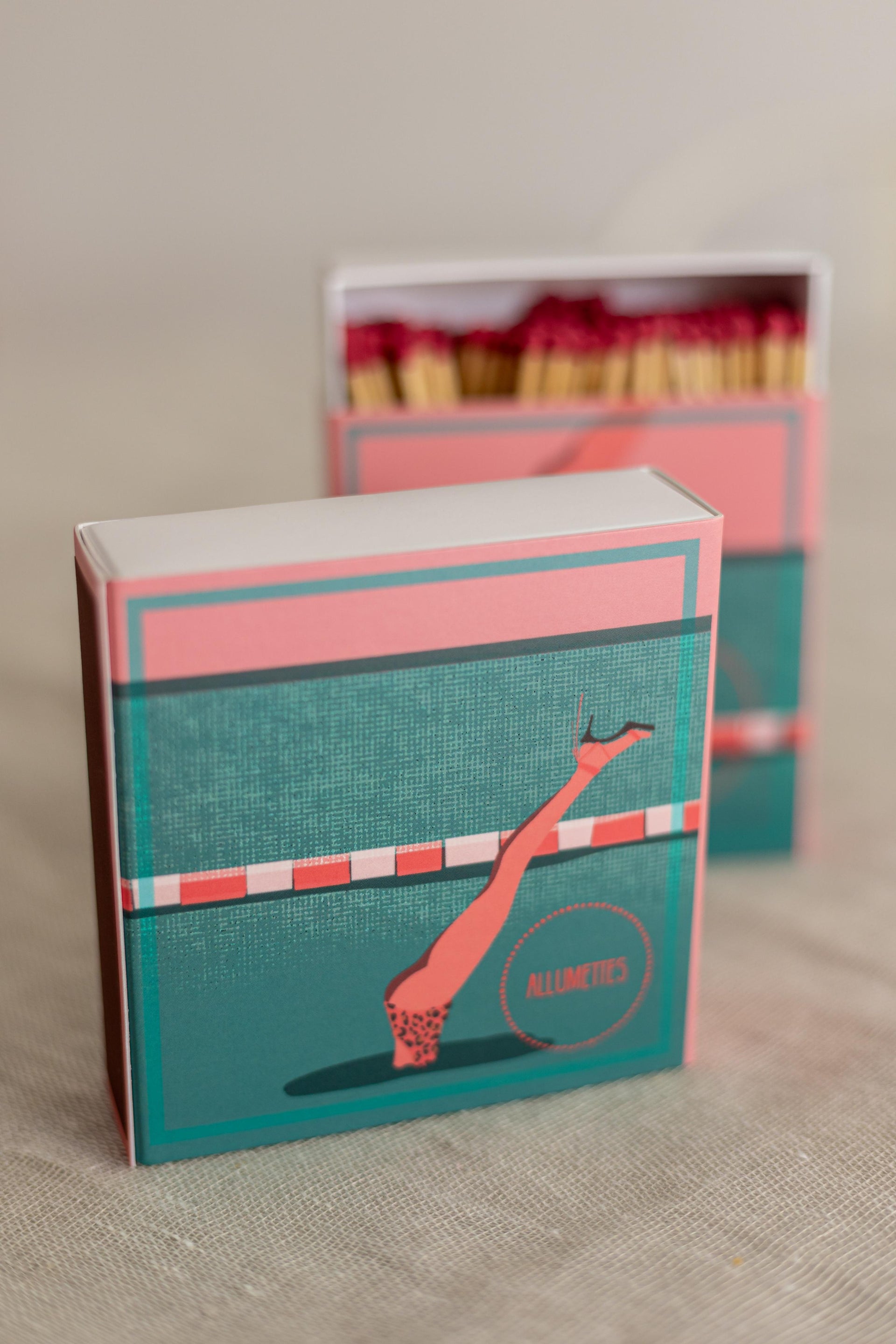 Em formato 11x11x3cm, contém 125 fósforos de segurança longos, com 10cm de comprimento. Acabamento gold e ilustração exclusiva.